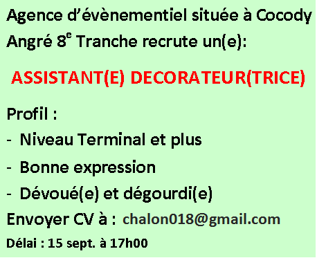 AGENCE D'EVENEMENTIEL située à Cocody-Angré recrute :