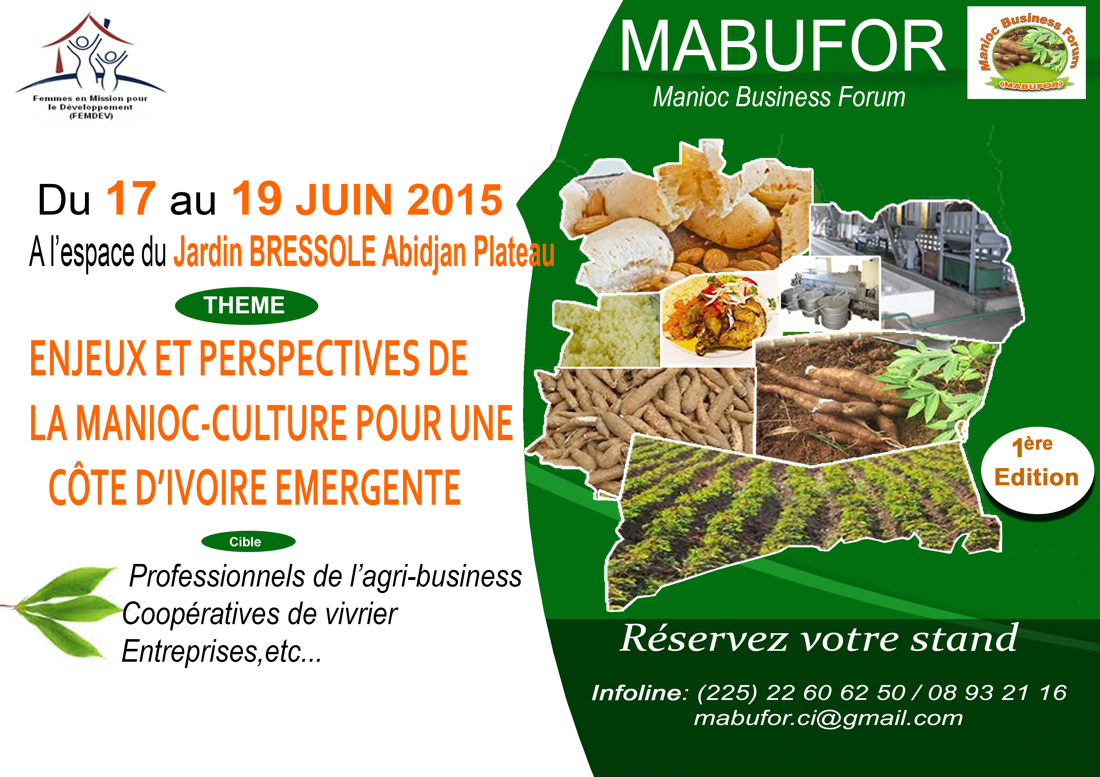 Le MABUFOR représente une formidable opportunité professionnelle, un cadre d’échanges pour démarrer de nouveaux courants d’affaires. Il s’agit, à travers ce forum, de favoriser une dynamique de transformation sociale et économique qui s’appuie sur la promotion du manioc et...