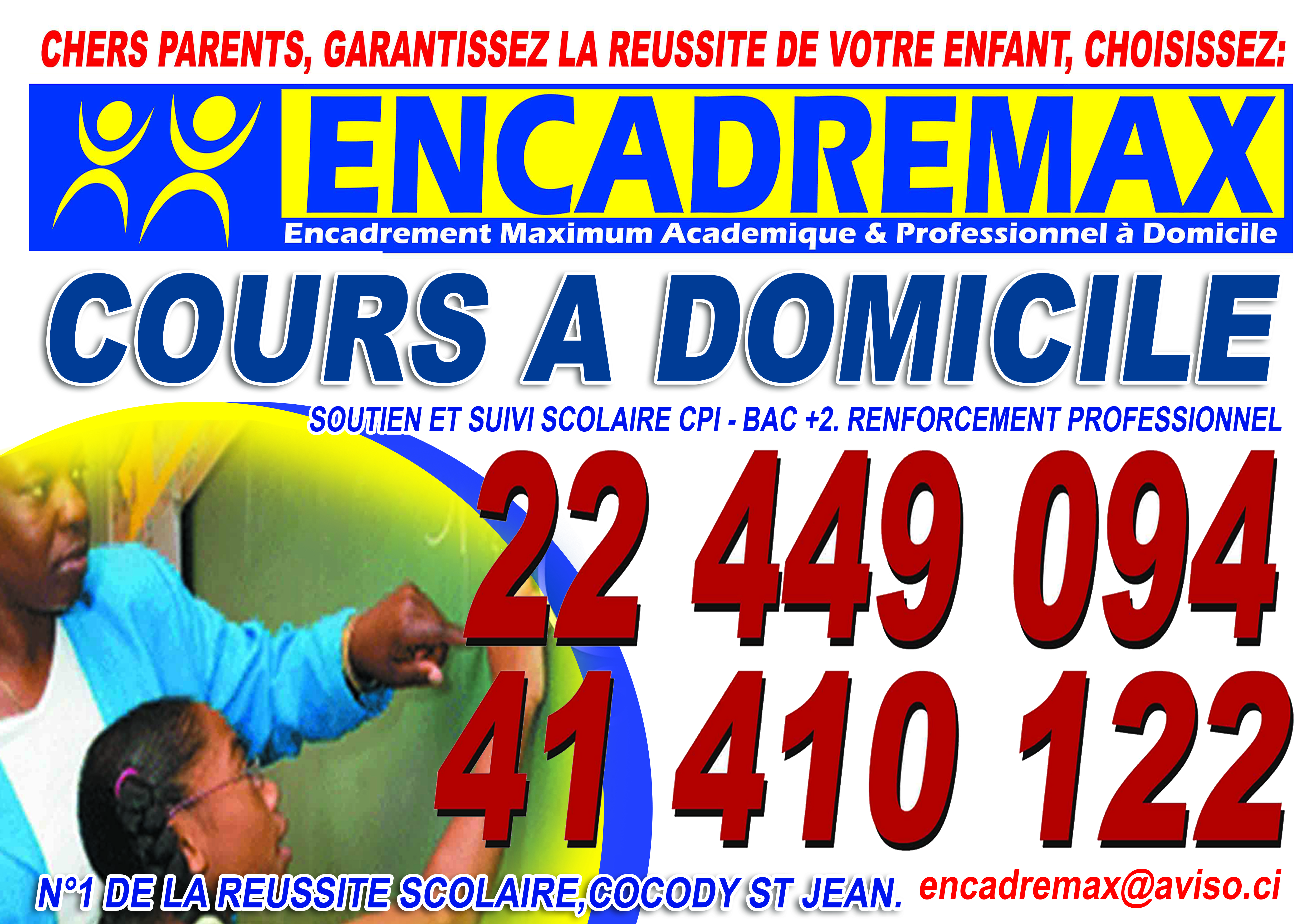 Préparez et réussissez vos examens de fin d’année (BEPC, BAC, BTS) avec ENCADREMAX, Structure expérimentée dans l’éducation, l’excellence et l’encadrement scolaire à domicile en vous offrant des programmes en adéquation avec le système ivoirien et français