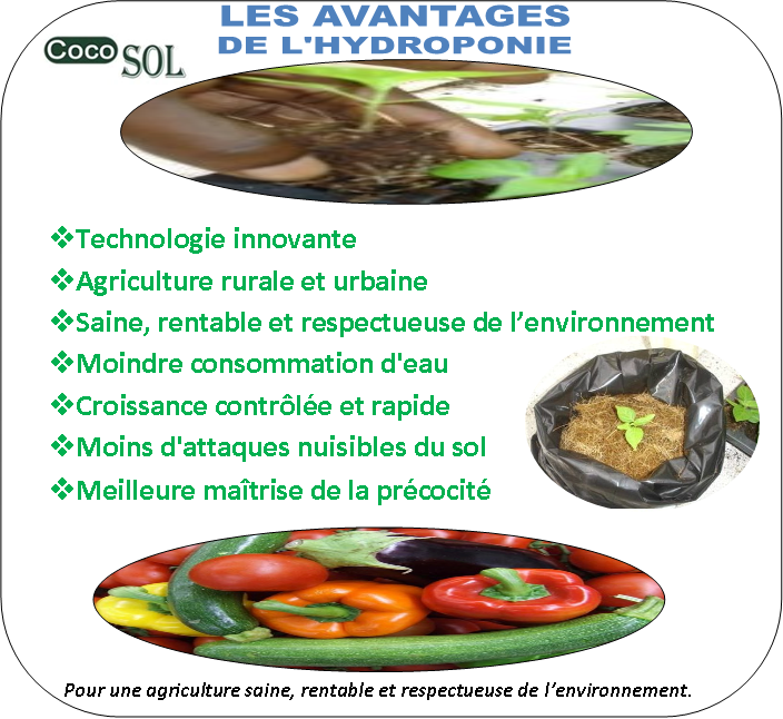 COCOSOL est une entreprise privée ivoirienne implantée à la RIVIERA M’POUTO (dans la commune de COCODY). Elle offre des produits et des services dans le domaine de l’agriculture, notamment la culture hors sol (ou culture hydroponique) des produits maraîchers tels que la tomate, l...