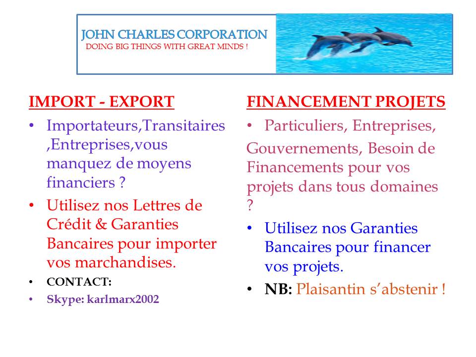 Nous agissons aux Noms et pour le compte de nos Partenaires à Londres et en Australie ! Financement de Projets: Entrepreneur,Homme & Femme d'Affaires,Porteur de Projet,Collectivité Publique & Privée; Besoin de moyens Financiers? Utilisez ...