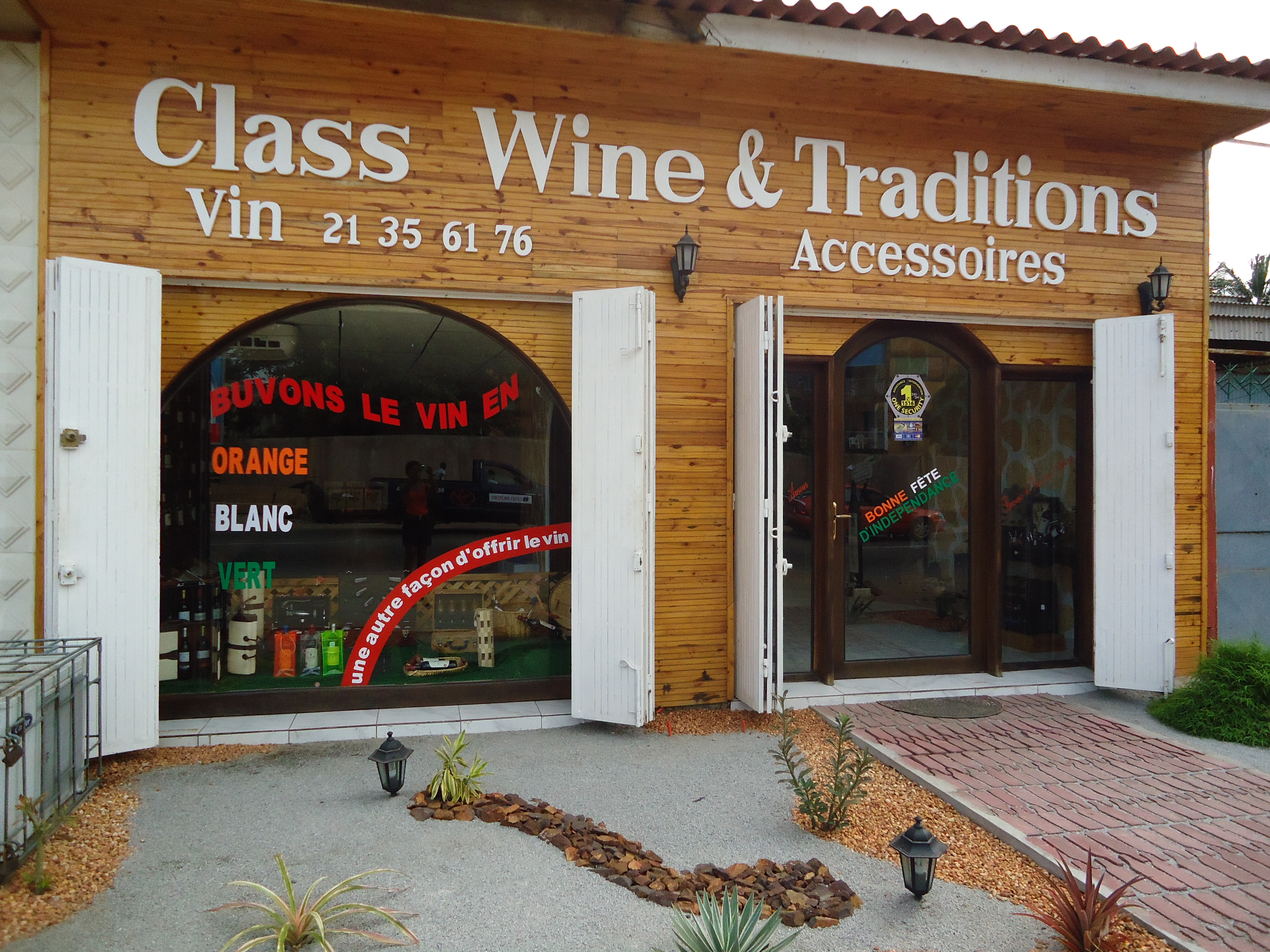 Le nom de notre magasin (cave)est; CLASS WINE & TRADITIONS.Vente de vins et des coffrets en grande quantité dans notre local.Nous sommes situés tout juste à côté de la Gorge d'Or ; à Marcory Zone4 sur le boulevard de Marseille.NB:PROMOTION, UN CART...