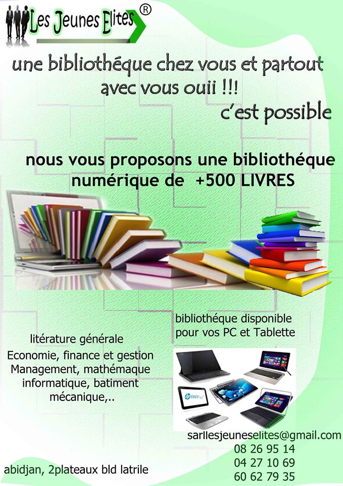 une bibliothèque chez vous et partout avec vous ehh ouiiii!!! c'est possible. nous vous proposons une bibliothèque numérique de +500livres sur vos PC et Tabllette.. avec les livres de vos choix quelques soit le domaines de votre activité.. ...