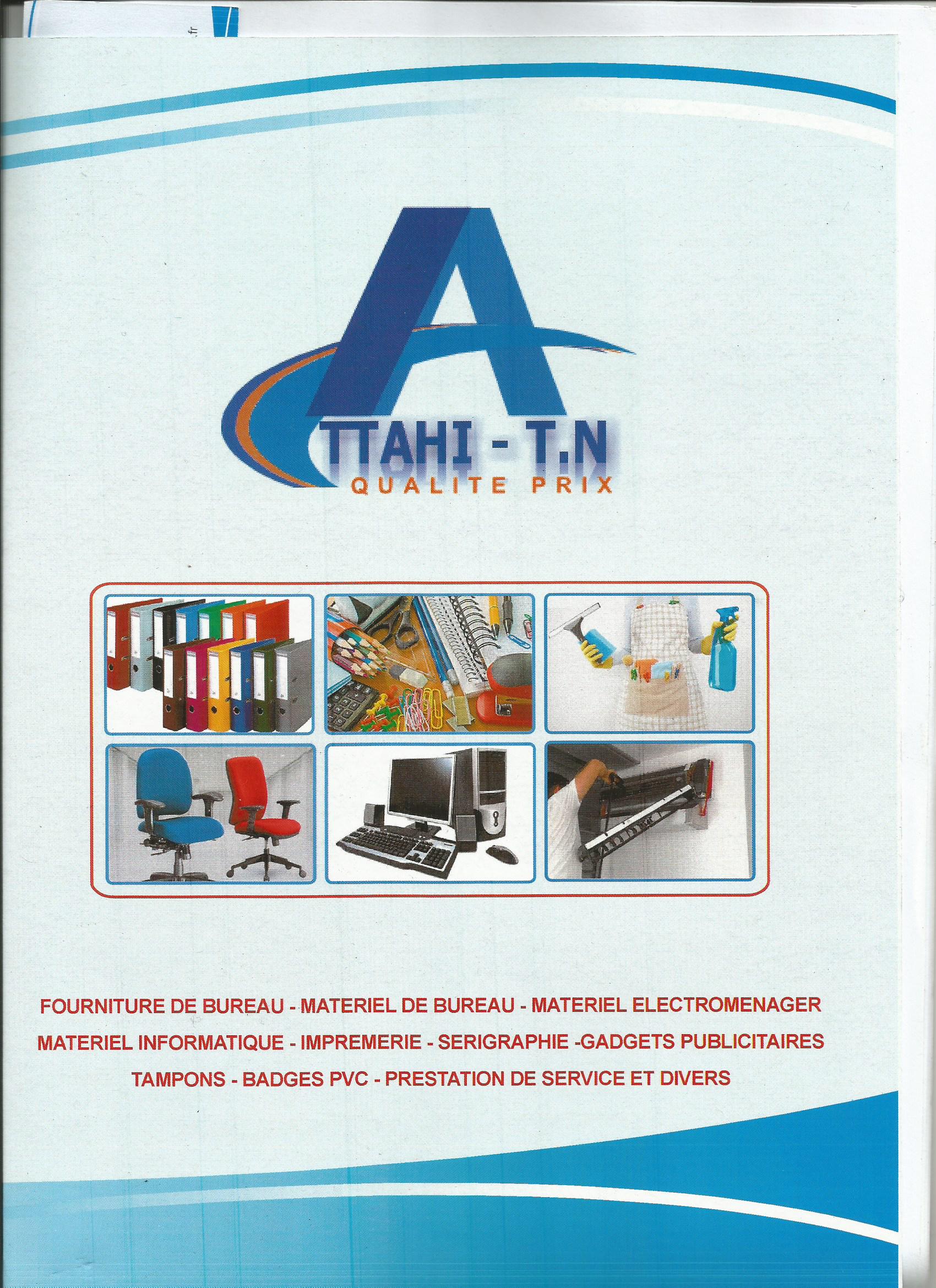 notre entreprise est spécialisée dans la vente de fournitures de bureau, matériels de bureau, mobiliers de bureau, matériels informatiques, imprimerie, sérigraphie, gadgets publicitaires, tampons, badges pvc, prestations de services et divers