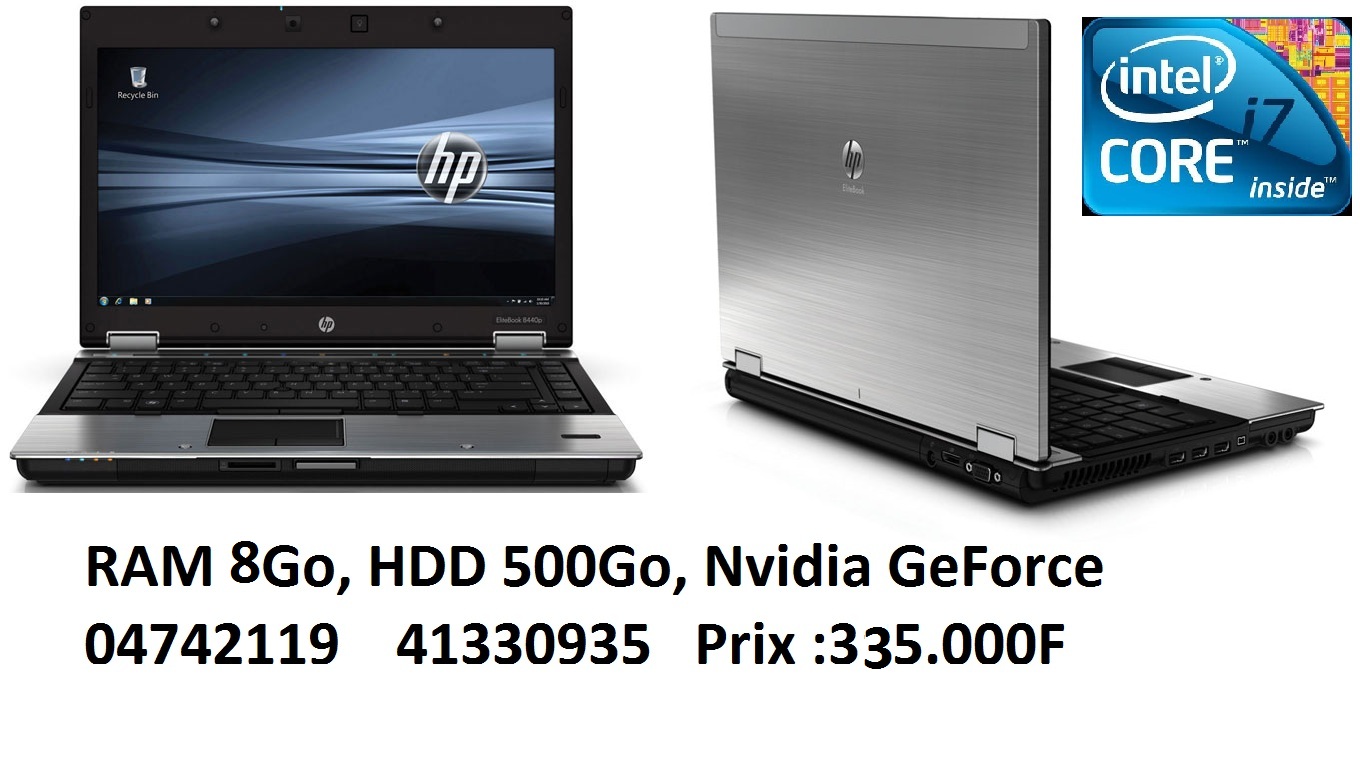 VENTE RAPIDE HP ELITEBOOK 8440P Core i7, très Propre Intel Core i7 2.56Ghz RAM 8Go, HDD 500Go, Ecran 14", Nvidia GeForce 2Go WIFI, WEBCAM, LECTEUR DVDRW, Autonomie + 4H30 Prix 335.000F APPEL VITE : 09984484// 04742119// 41330935 Et viens te joindre au plus grand groupe de vente e...