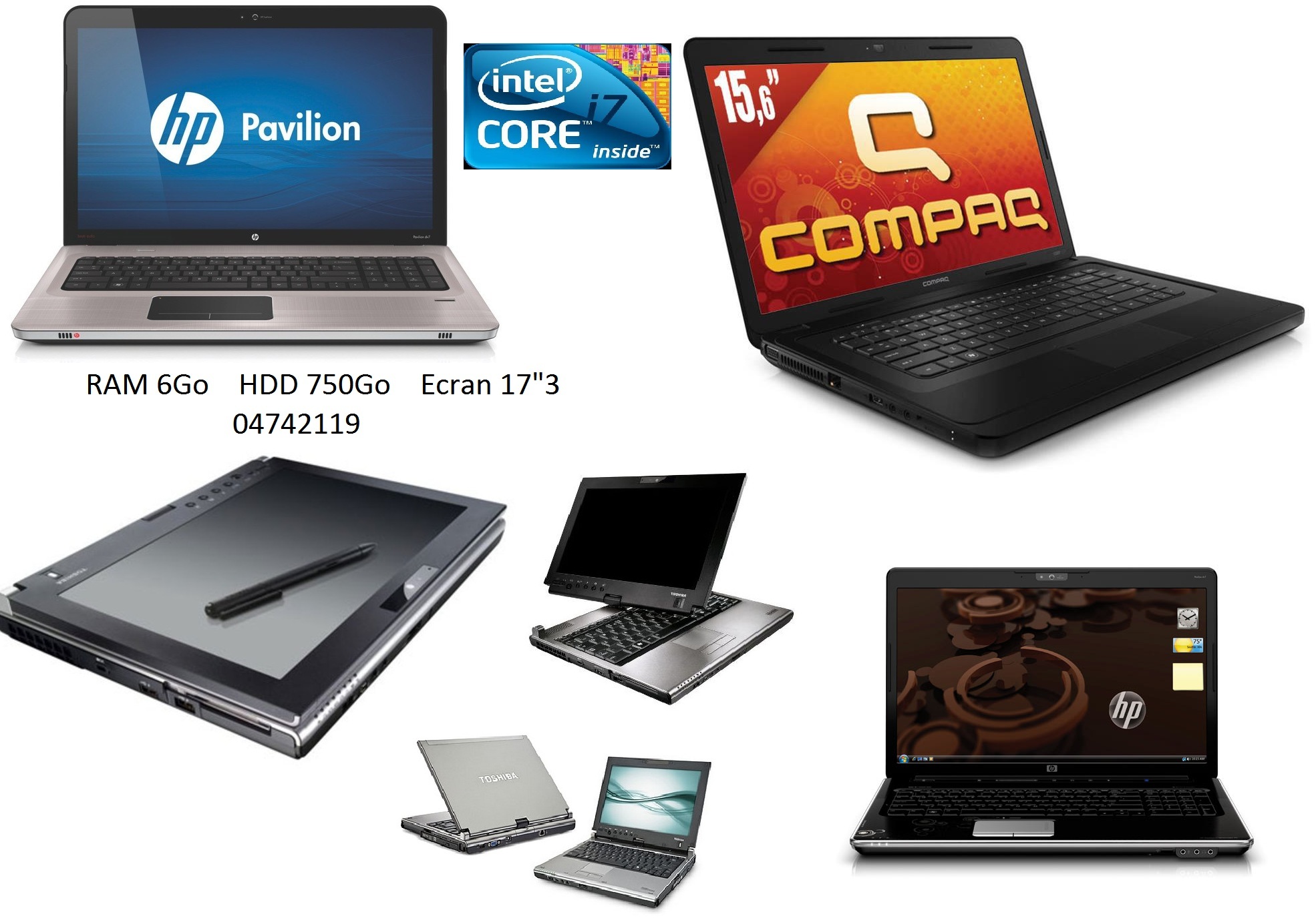 LES PC A PRIX KDO SONT LAAHP PAVILLON DV7 CORE i7 17Pouce NEUF DecompresséRAM 6Go, HDD 750Go, ATI RADEON MOBILITY 3Go. LECTEUR BLU-RAY, WIFI, WEBCAM, Empreint digitalePrix 420.000fHP PROBOOK 4530s Core i3 Quasi NeufIntel core i3 4X2.3Ghz, RAM 4Go, HDD 500GoPrix 260.000fTOSHIBA M7...