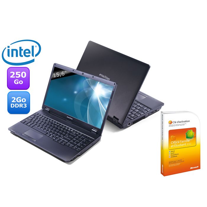 VENTE D'ORDINATEUR PORTABLE second main: Emachine Dual-Core très propre Processeur: Intel Dual-Core 2X2.00Ghz RAM 2Go, HDD 250Go, Système d'exploitation :Microsoft Windows 7 Intégral 32 bits Ècran: 15"6 WIFI, WEBCAM, LECTEUR DVDRW GRAVEUR CLAVIER AZERTY , Autonomie + 3h30 PRIX 20...
