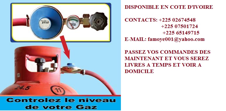 SUIVEZ VOTRE NIVEAU DE CONSOMMATION DE GAZ DANS DANS LES BOUTEILLES GRACE A NOTRE APPAREIL ECOGAZ CONTACTS : +225 02674548NOUS SOMMES A VOTRE DISPOSITION POUR LA LIVRAISON DANS LE TEMPS