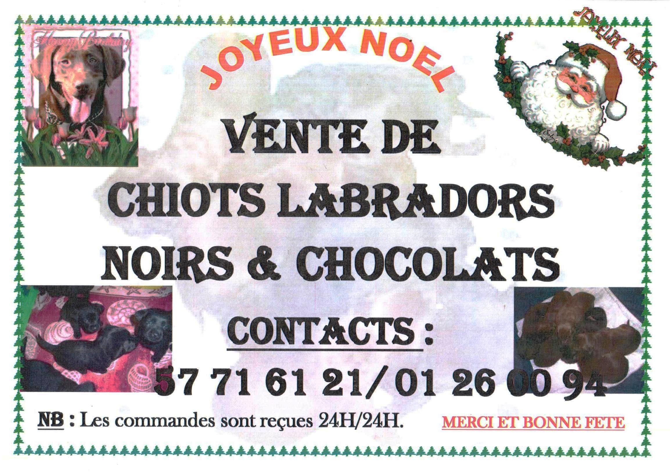 Bonjour, je vends des chiots noirs et chocolats pure de race labrador. Contacts: 57 71 61 21 / 01 26 00 94 Suliman
