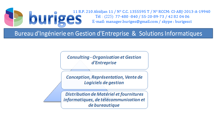 PME de prestation en gestion comptable & financière, de conception de logiciels de gestion offre des prestationS de comptabilité et gestion en free lance. contacts : manager.buriges@gmail.com cél : 77 48 08 40 / 42 82 04 06