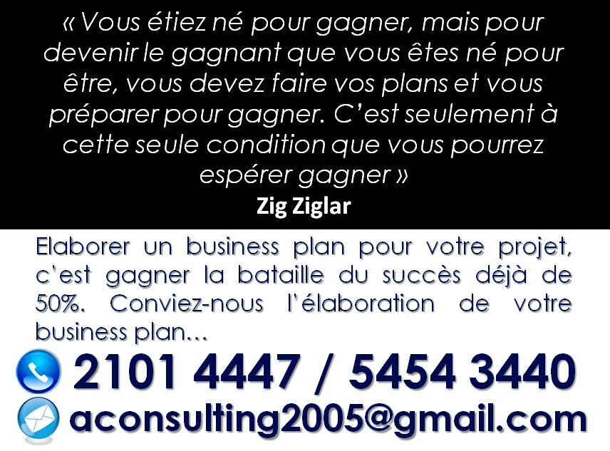 Pour la réalisation de votre business plan, bilan comptable, tableau de bord de gestion...contactez-nous. Une équipe d'experts se tient à votre disposition. Tél: 2101 4447 / 5454 3440 E-mail: aconsulting2005@gmail.com