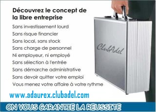 Dans le contexte actuel de floraison de business sur la toile, il faut savoir choisir son affaire. Le bon business, c'est celui qui te permet de rentrer dans tes fonds investis en un maximum de 1 mois. Nous avons trouver le MLM qu'il vous faut: www.adaurex.clubadel.com ...
