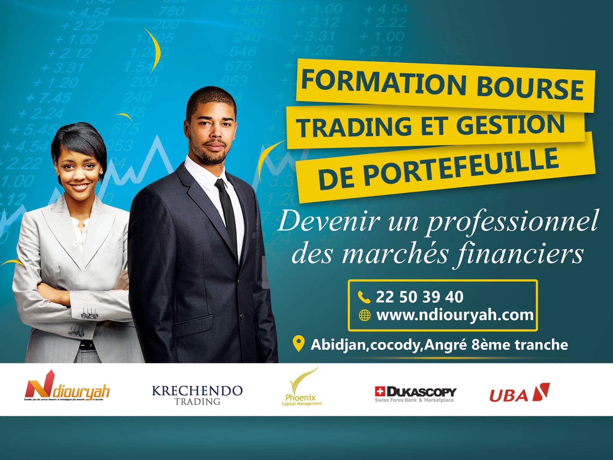 En collaboration avec KRECHONDO TRADING, NDIOURY ACADEMY vous propose une formation de trading délivrant un diplôme Européen. Au sein de la salle des marchés, vous apprendrez à maîtriser des outils de trading utilisés dans les plus grandes arcades de trading. Au cours d’un pro...
