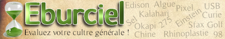 Eburciel un jeu de culture générale en ligne et gratuit, édité par Eburpress (studio de création graphique et publicitaire), pour se distraire en apprenant. Il est destiné à tous le monde: collégiens, lycéens, étudiants et travailleurs. Vous êtes amené à répondre à 10 ...