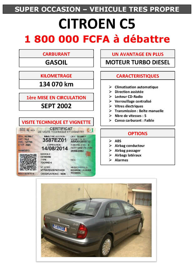 SUPERBE VOITURE A VENDRE 1 800 000 FCFA
