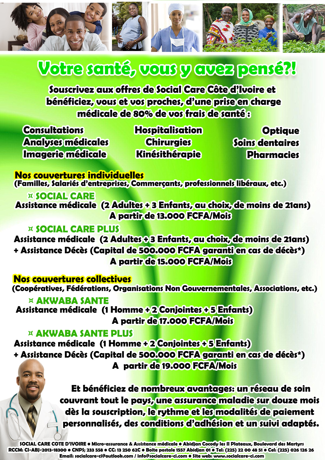 URGENT URGENT SOCIAL CARE MICRO-ASSURANCE SANTE recherche des DISTRIBUTEURS avec un partenariat gagnant-gagnant à Abidjan et villes de l'intérieur du pays pour les besoins d'expansion commerciale de ses produits d'assurance santé. MISSION : - gestion et le développement d'...