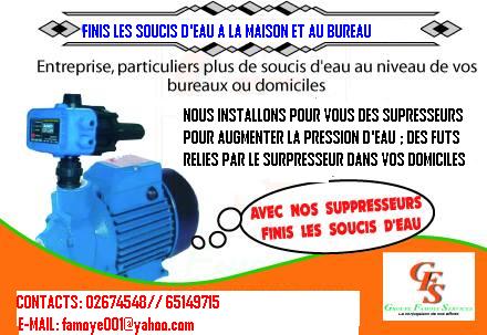 FINIS LES SOUCIS D'EAU AVEC NOS SURPRESSEURS ET LES FUTS QUE NOUS INSTALLONS CHEZ VOUS A LA MAISON OU AU BUREAU. CONTACTEZ NOUS AU 02674548E-MAIL: famoye001@yahoo.com