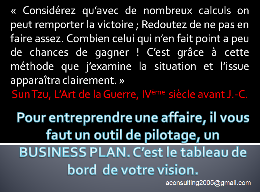Pour la réalisation de votre business plan, bilan comptable, tableau de bord de gestion...contactez-nous. Une équipe d'experts se tient à votre disposition. Tél: (+225) 21014447 / 54543440 E-mail: aconsulting2005@gmail.com