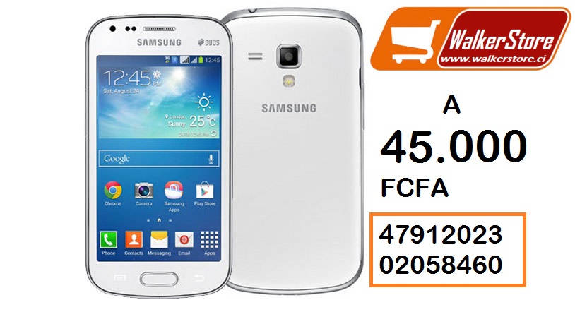 Samsung Galaxy S Duos (S7562) Général Design Classique (full tactile) Dimensions 122 x 63,1 x 10,5 mm Poids 120 grammes Niveau d'exposition (DAS) 0,47 W/Kg Système d'exploitation (OS) Android 4.0 Ice Cream ...