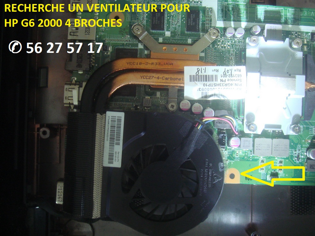 RECHERCHE UN VENTILATEUR CPU POUR PC PORTABLE HP G6 - 2000REFERENCE 683193-001CONTACT > +225 56 27 57 17