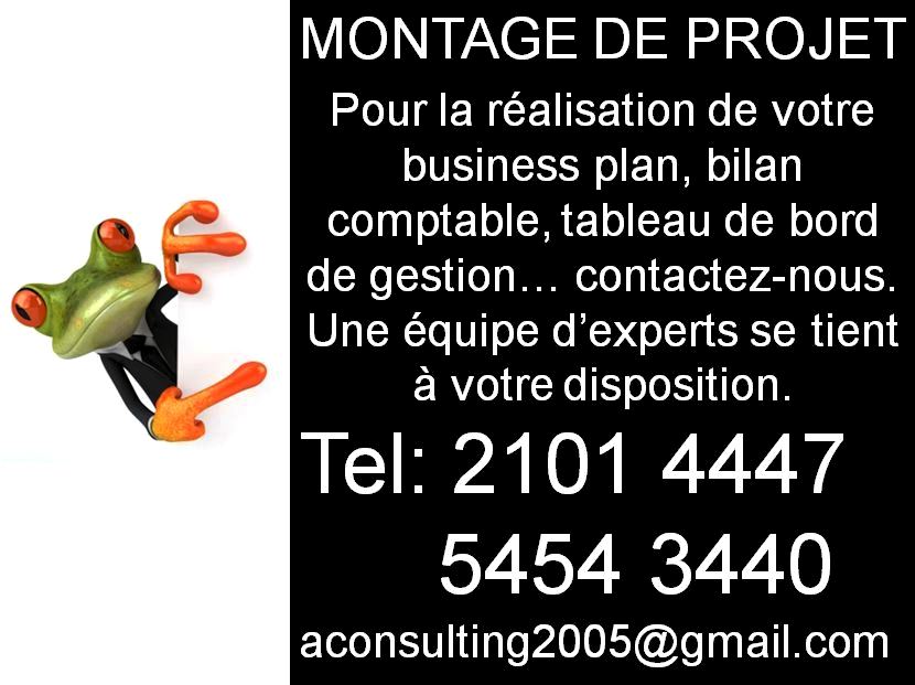 Pour la réalisation de votre business plan, tableau de bord de gestion, bilan comptable...contactez-nous. Une équipe d'experts se tient à votre disposition. Tél: (+225) 2101 4447 / 5454 3440 E-mail: aconsulting2005@gmail.com