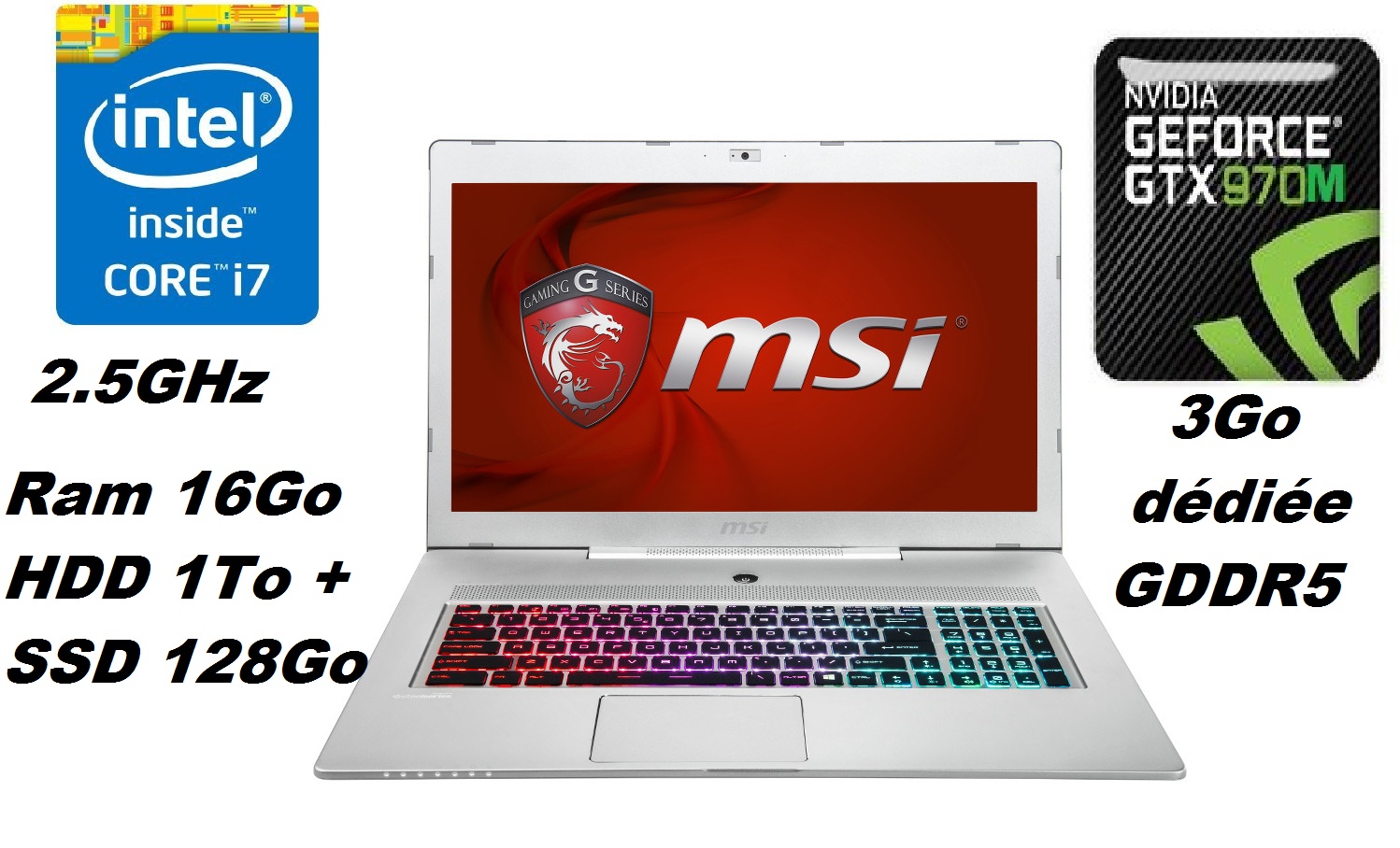 VENTE RAAAAPIDE PC Gamer et montage 3D MSI GS70-2QE . Écran Full HD 17"3 . NEUF dans le carton . Intel® Core™ i7-4710HQ CPU 8X2.50 GHz, Ram 16Go, HDD 1000Go. +SSD 128Go. NVIDIA® GeForce® GTX 970M dédiée 3Go GDDR5 . Windows 8.1 64 bits, Clavier rétroéclairé,.......Prix:781.000...