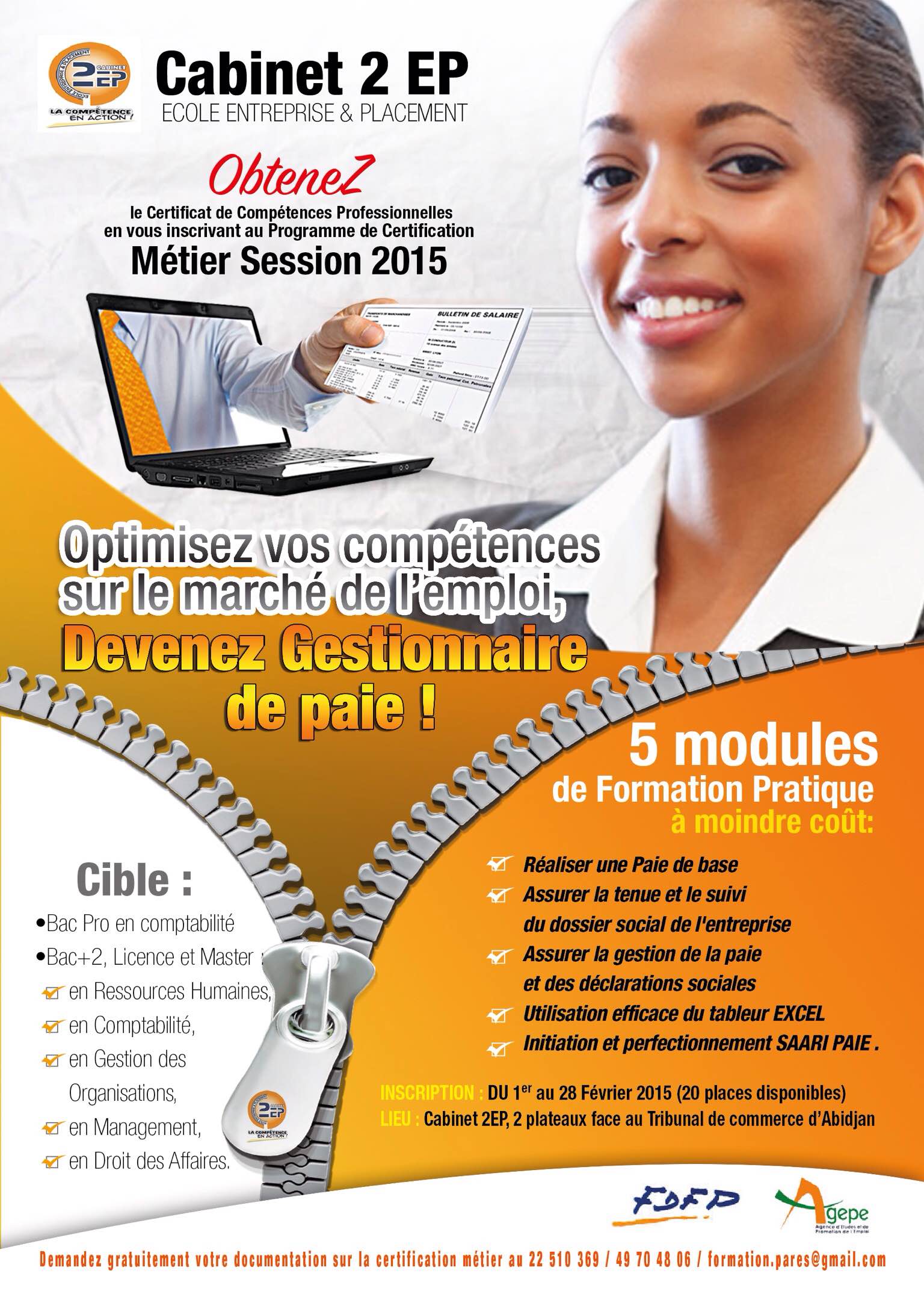 "MULTIPLIEZ VOS CHANCES D'OBTENIR UN EMPLOI" Participez à la formation métier "devenir gestionnaire de paie" Obtenez un certificat de compétence professionnelle Pendant 15 jours répartis sur 3 semaines, à compter du samedi 25 juin. Renseignem...
