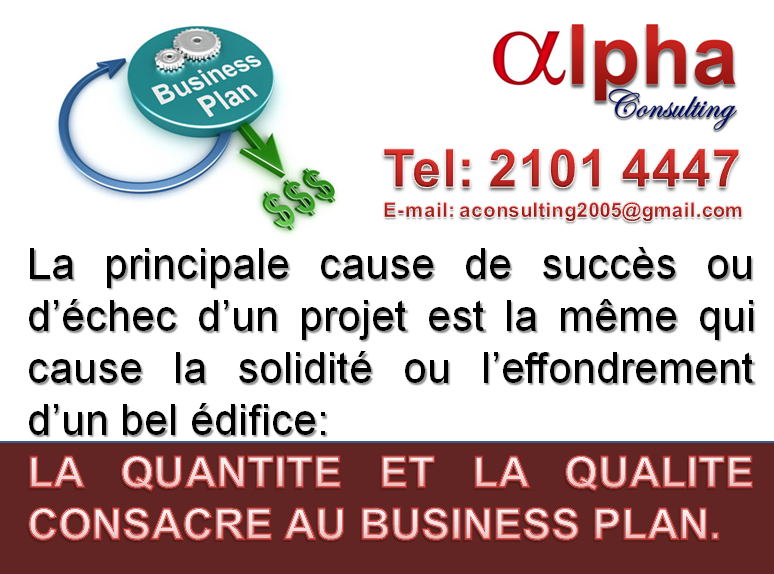 Pour la réalisation de votre business plan, contactez-nous! Tel: 2101 447 E-mail: aconsulting2005@gmail.com