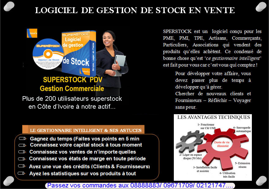Véritable outil de gestion de vos stocks et de vos ventes, SuperStock offre à tous ceux qui opèrent dans le domaine de l’Achat pour Revendre un outil simple et intelligent. Les ventes directes à tickets ou les Facturations ordinaires sont parfaitement gérées afin de déboucher sur...