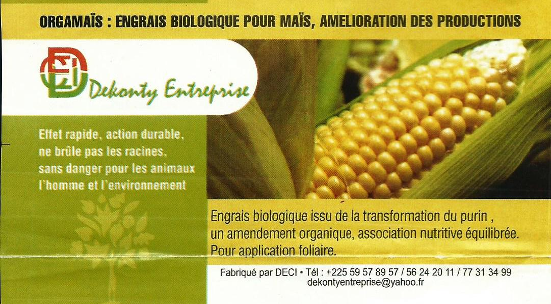 DEKONTY ENTREPRISE est une société de Fabrication de produits agricole exclusivement biologique ,Encadrement et assistance technique agricole. création de plantation-formation. nous venons vous proposer la nouvelle gamme de produit « orga » pour les cultures de : riz-cacao et ...