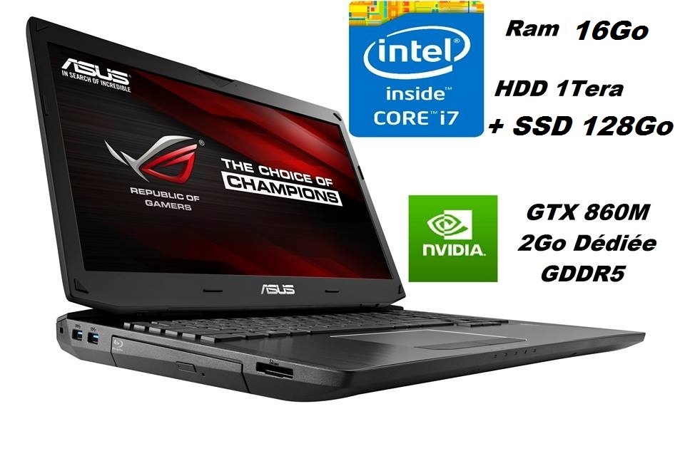 VENTE RAAAAPIDE PC Gamer et montage 3D ASUS ROG G750JM-T4103H. Écran 17.3 pouces NEUF dans le carton . Intel® Core™ i7 4700HQ CPU 8X2.40 GHz, Ram 16Go, HDD 1000Go. +SSD 128Go. NVIDIA® GeForce® GTX860M dédiée 2 Go GDDR5 . Windows 8.1 64 bits, Clavier rétroéclairé, Prix:781.000f...