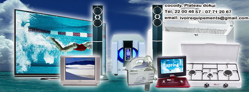 La société IVOIRE EQUIPEMENTS,spécialiste en matériels électro-ménagers neuf vend : -Poste téléviseur SHARP 14" : 35 000 FCFA -Poste téléviseur SHARP 17" : 45 000 FCFA -Valisette de couverts : 45 000 FCFA -DVD portables : 45 000 FCFA -Home Cinéma : 135 000 FCFA -Gazinières 3 feux...